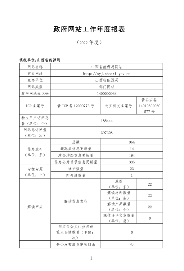 山西省能源局2022年度网站工作年度报表
